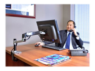 Articulating arm, desk clamp mount, grommet mount, extension brackets